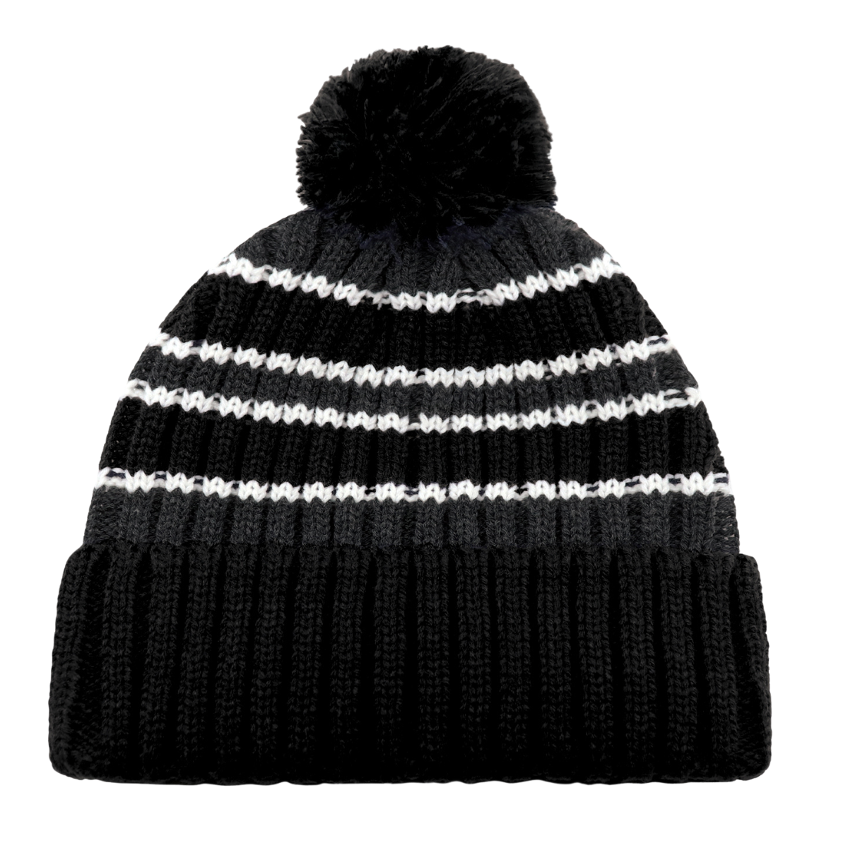 Tuque à revers en tricot épais 100 % acrylique avec pompon. Style rayé chunky knit, chaude et durable, idéale pour…