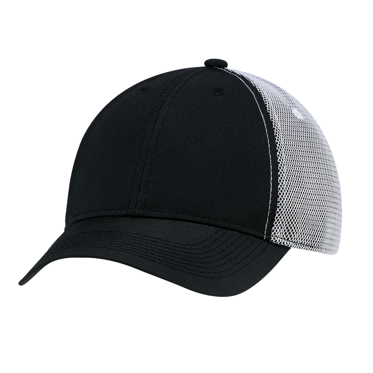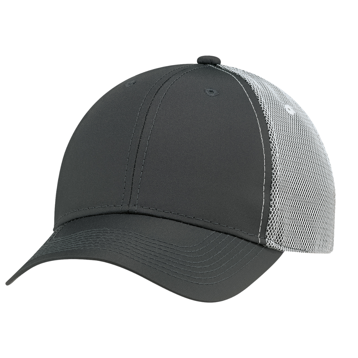 Casquette 6 panneaux en polyester Rip Stop avec filet. Visière pré-courbée, couture renforcée et fermeture velcro ajustable.