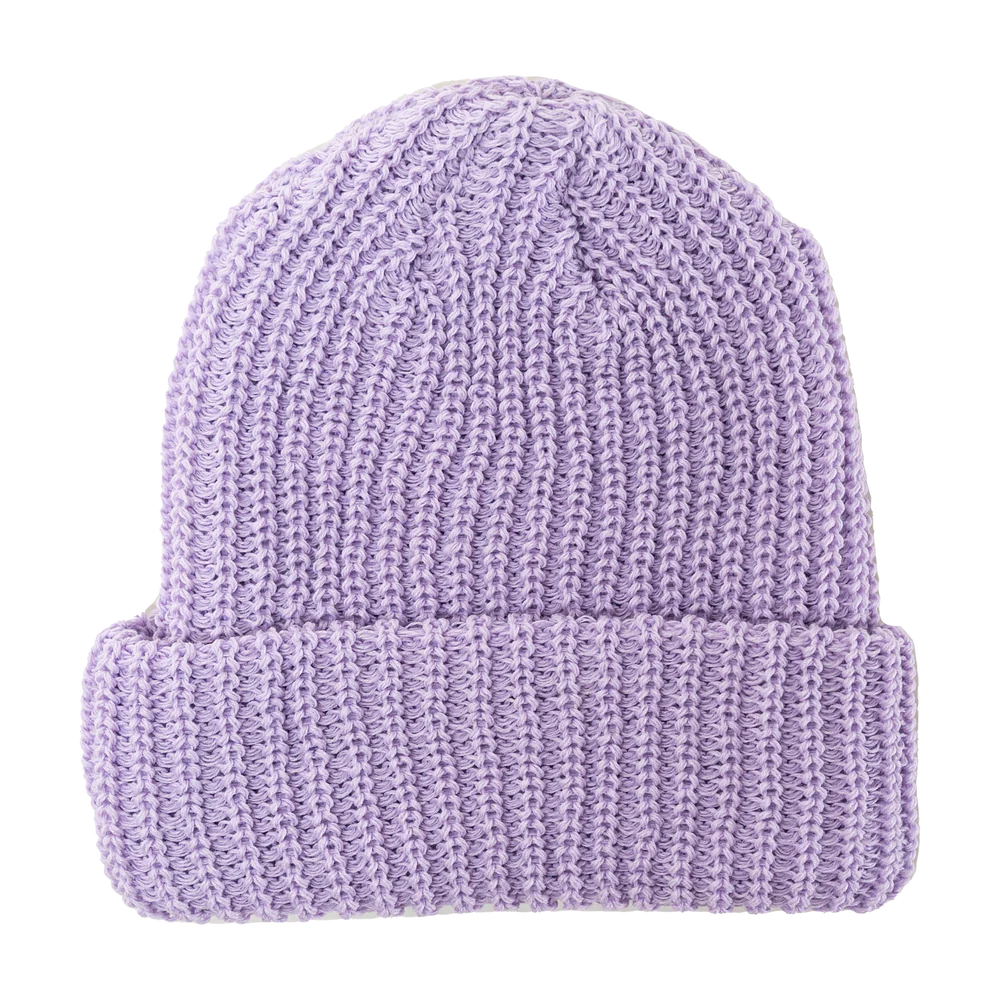 Tuque à revers ajustable en tricot 100 % acrylique. Taille unique (9"/12"), poids 80 g. Fabriquée au Canada.
