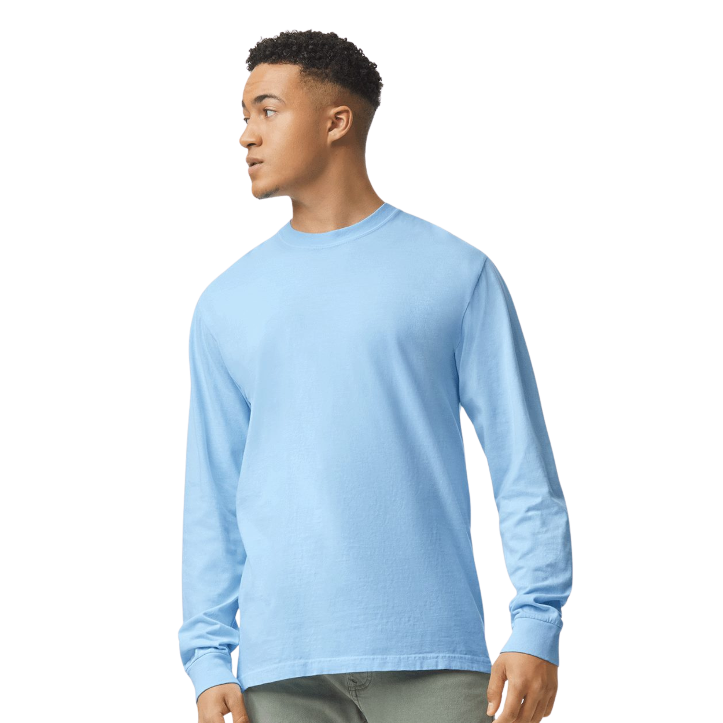 Chandail 10 oz en 100 % coton filé à l’anneau, tissu doux. Coupe décontractée, col largeur classique, col et épaules renforcés en sergé, poignets côtelés et étiquette en sergé.
